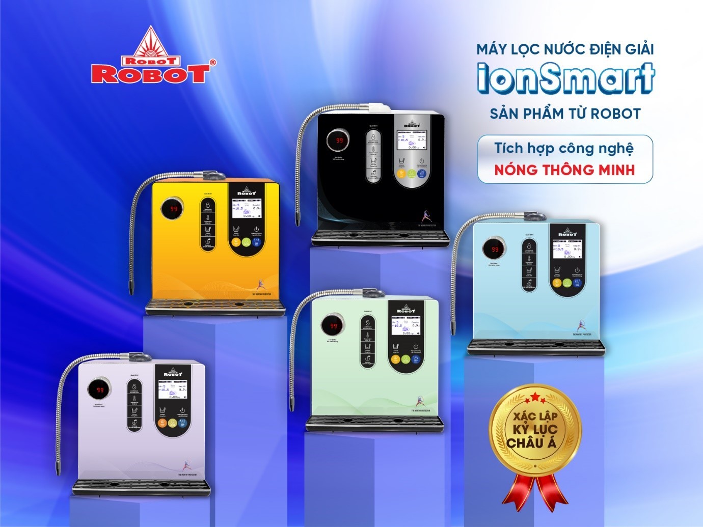 Nếu bạn đang tìm kiếm một chiếc máy lọc nước điện giải ion kiềm cao cấp có chế độ nóng thông minh, vận hành ổn định và đáp ứng đa dạng nhu cầu sử dụng thì ROBOT ionSmart là sản phẩm bạn cần. Với thiết kế hiện đại cùng các tone màu pastel ấn tượng, ionSmart còn là điểm nhấn nội thất cho không gian nhà bạn.