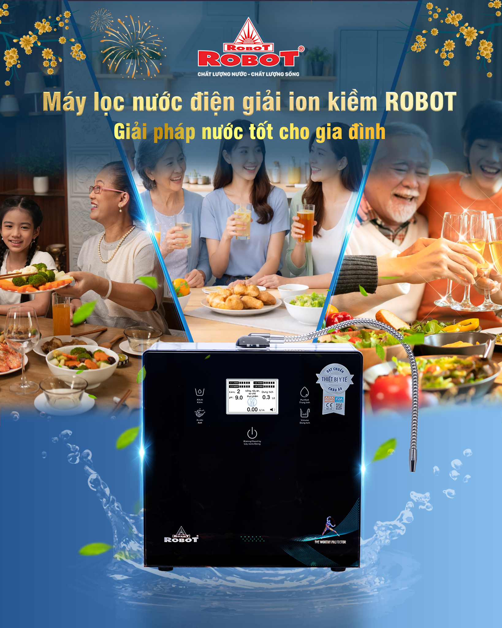 Máy lọc nước điện giải ion kiềm ROBOT: Giải pháp nước tốt cho gia đình dịp cuối năm