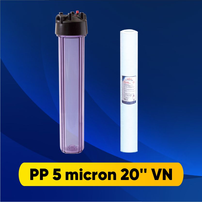 Lõi lọc (Việt Nam): PP Sediment 5 micron; làm từ sợi Polypropylene bông xốp được nén chặt có khe hở ≤ 5 micron