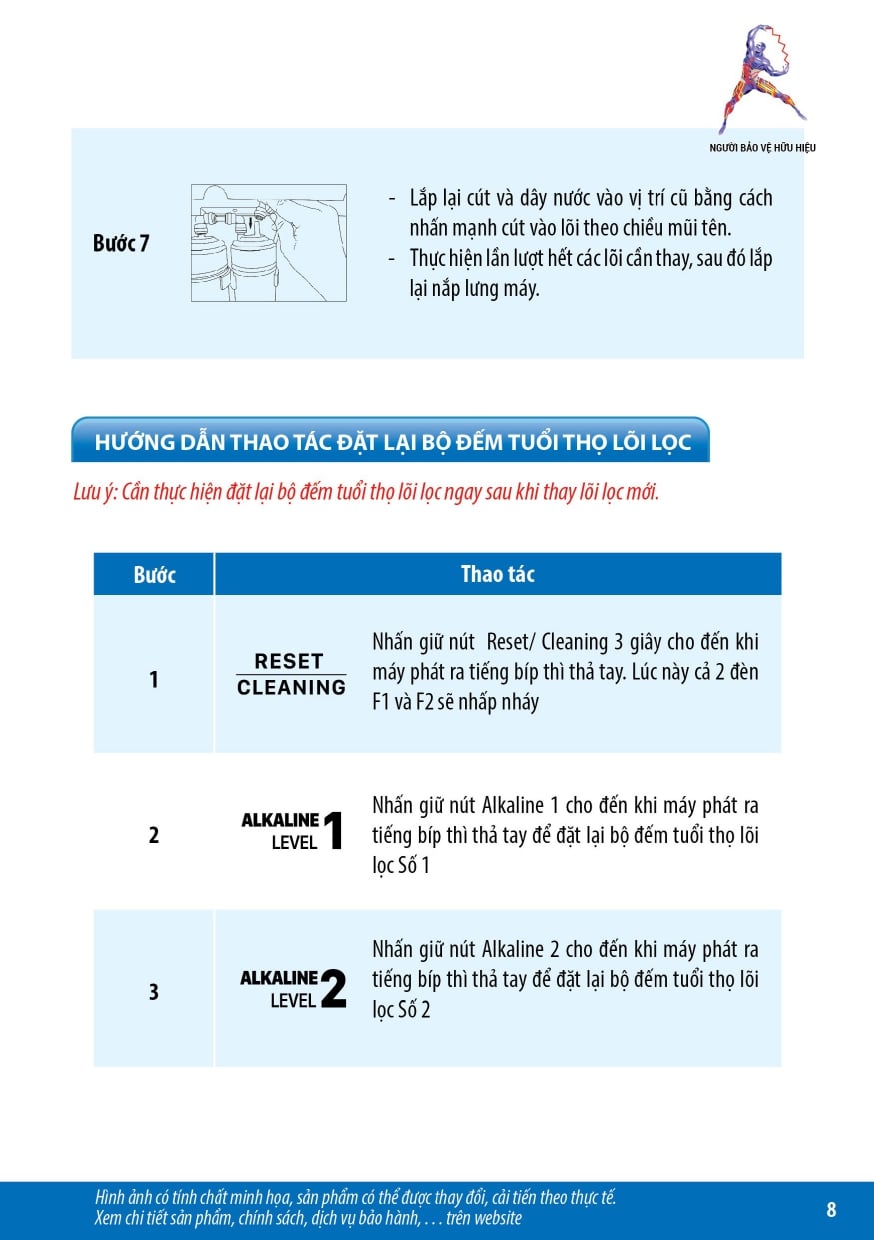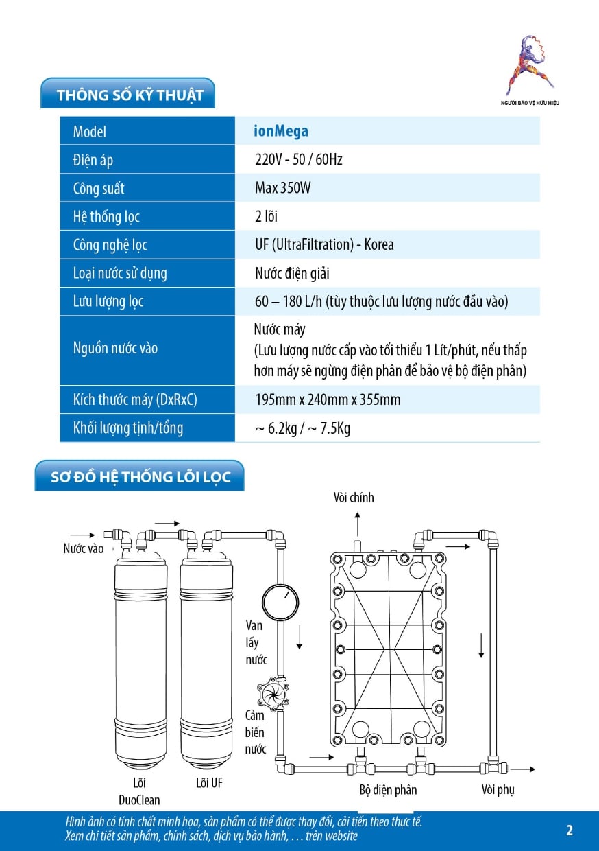 - Sản phẩm được trang bị Hệ thống lọc đa cấp gồm màng lọc UF & lõi lọc DuoClean sản xuất tại Hàn Quốc, chuyên dụng trong ngành lọc nước điện giải: