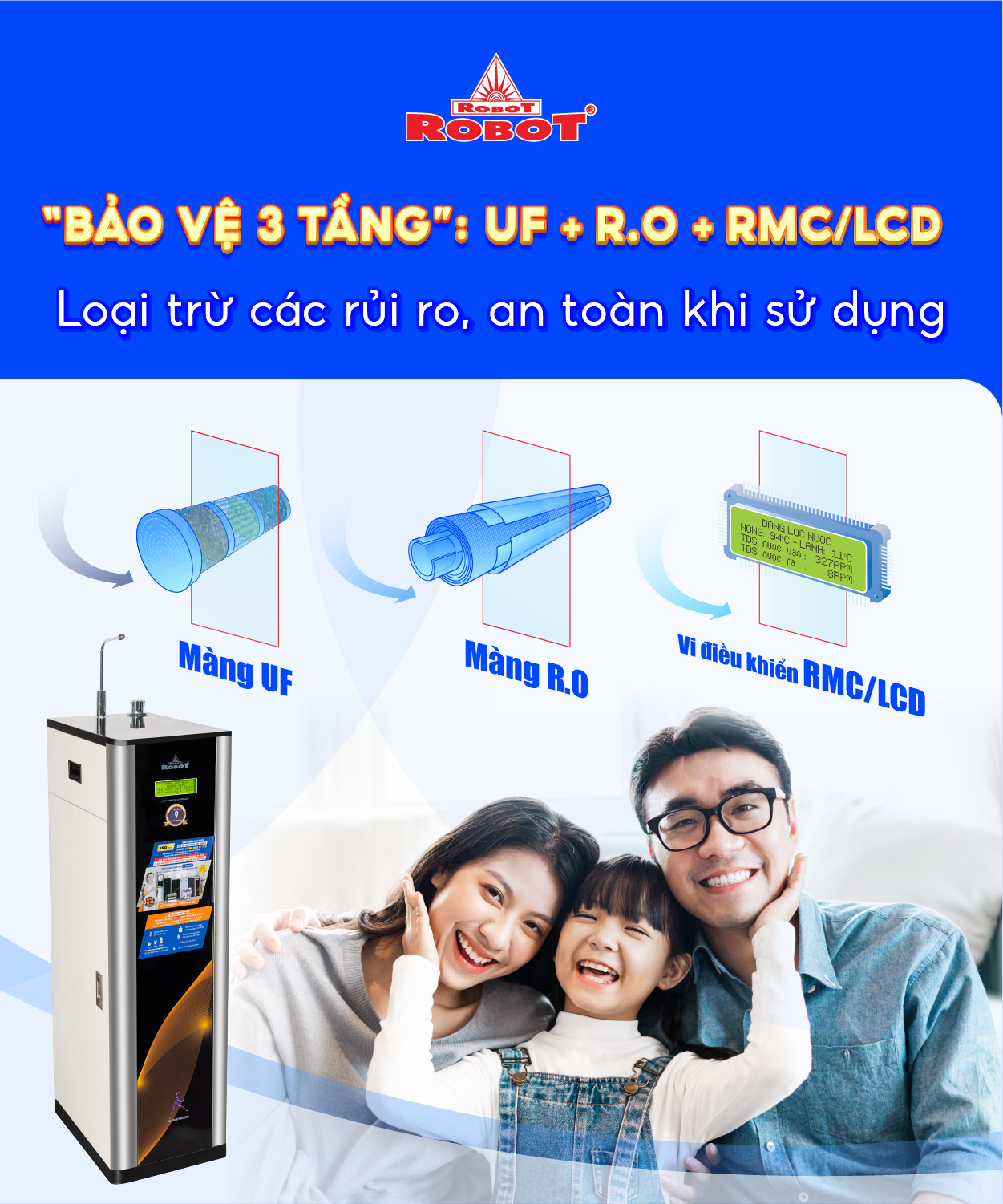 1. Máy lọc nước “Bảo vệ 3 tầng” UF + RO - RMC/LCD