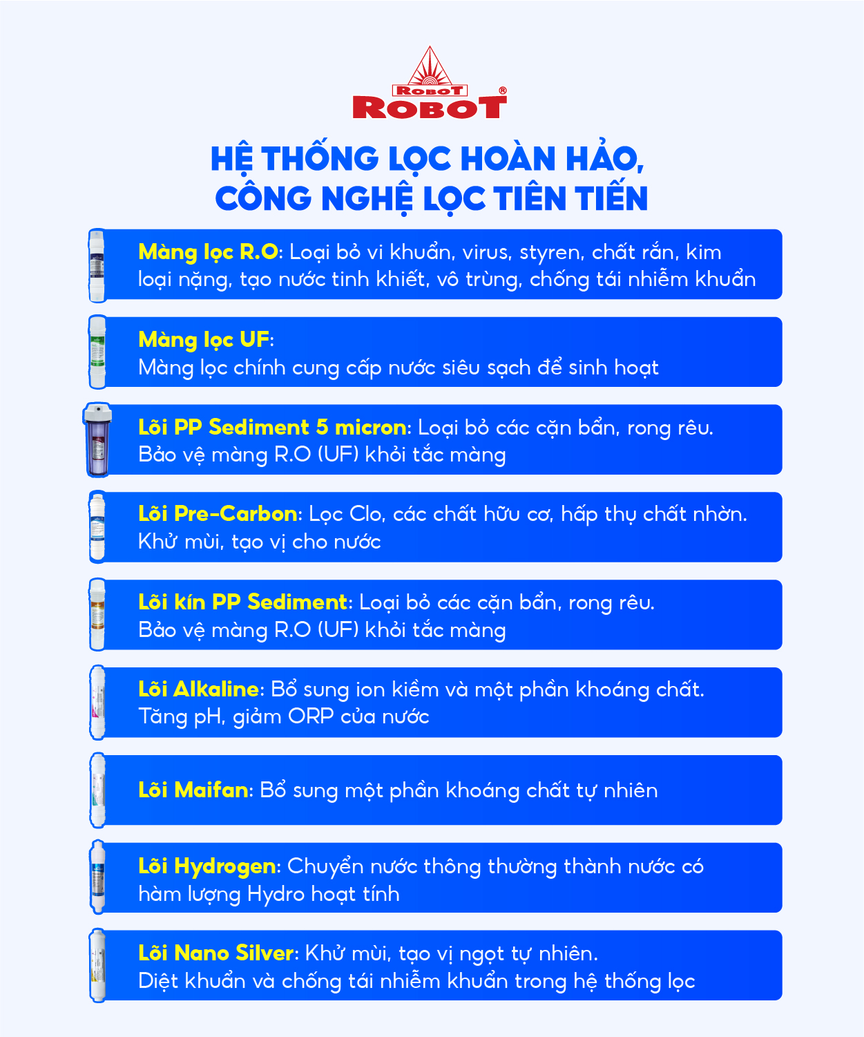 Máy lọc nước ROBOT đạt Chứng nhận “Sản Phẩm Tiêu Biểu TPHCM Năm 2023”. Quyết định số 560/QĐ.HHDN. Xem chi tiết Tại Đây |
