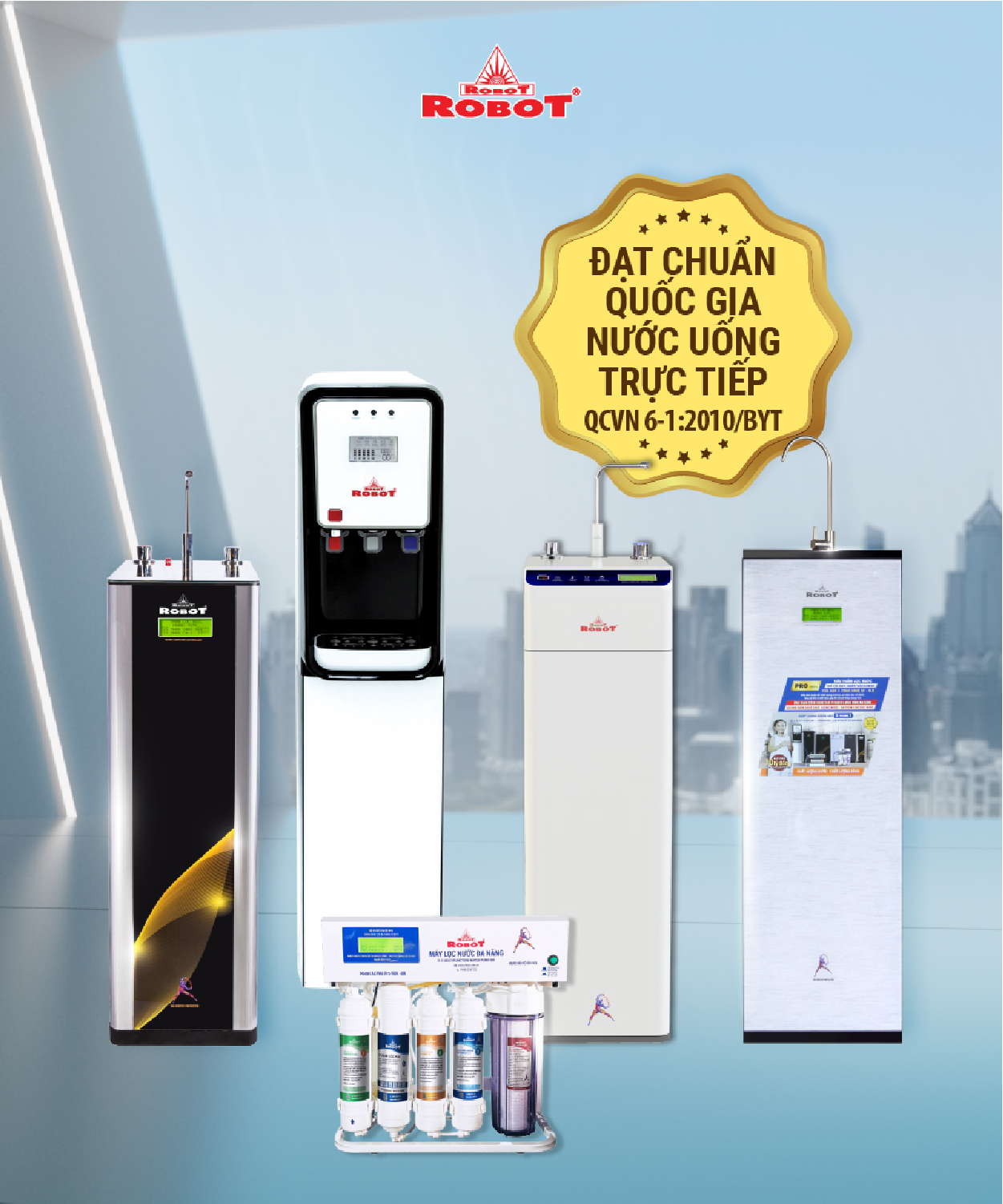 Máy lọc nước ROBOT phù hợp với Quy chuẩn kỹ thuật Quốc Gia QCVN 4:2009/BKHCN. Giấy Chứng Nhận số QC 2780-20. Xem chi tiết Tại Đây |